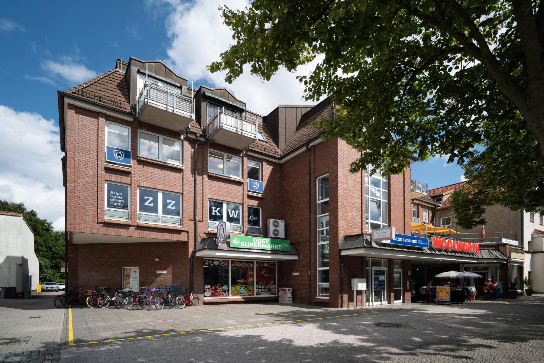 Im Wohn- und Geschäftshaus in der Bahnhofstraße 17a ist ein zentraler Eingang zum Treppenhaus mit Aufzug direkt neben dem Eingang zu den Geschäften.
